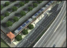 The Lindbergh Intermodal Transportation Center concept seen above, resulted from the work of international transportation planners hired to create predictions for traffic and transit use, sustainability experts to identify the impacts of greenhouse gases, criteria air pollutants, and options for building a truly green facility, consultants using GPS to develop accurate elevations for each roadway on the north side, and architectural communications specialists to create renderings.