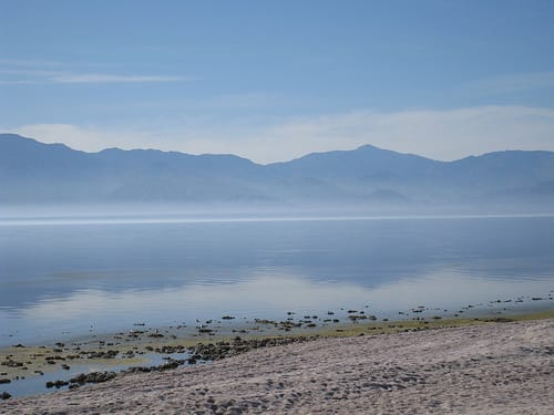 The Salton Sea is California's largest inland lake. It's 15 miles by 35 miles. Like Death Valley, the Sea is below sea level -- some 226 feet -- and is fed by the New, Whitewater and Alamo rivers as well as run-off from neighboring farmlands.