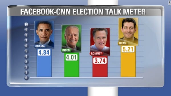 CNN partnered with Facebook to study the popularity of political candidates on the world's largest social network. The findings show that Paul Ryan, who entered the political spotlight just last week, now surpasses President Obama as the most-talked about politician on Facebook. Paul Ryan social media standings, CNN and Facebook