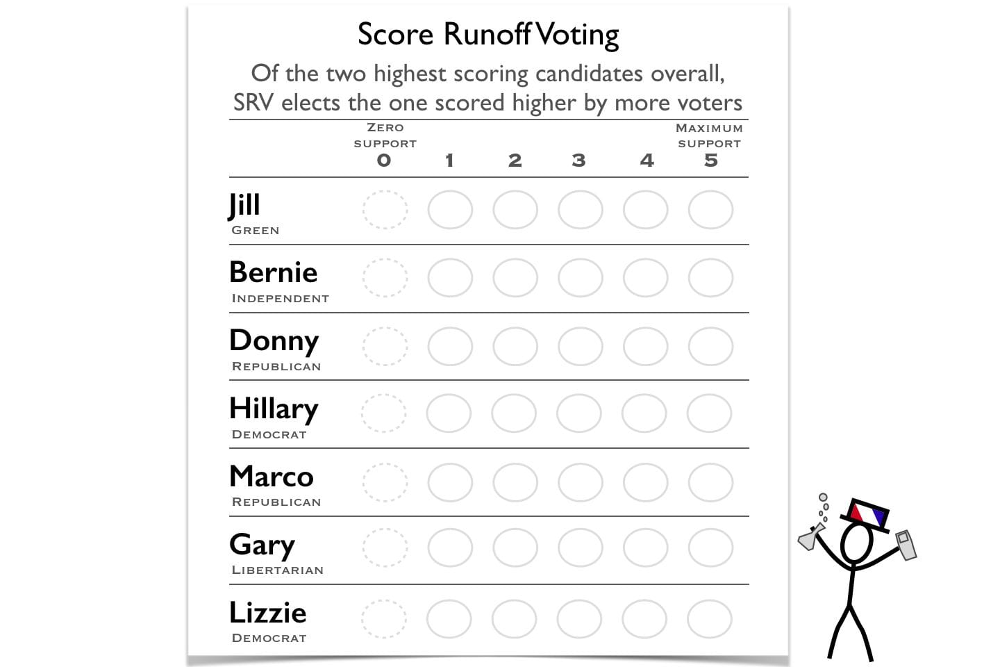 If my Google News Alerts are a valid indicator, public interest in election process reform has seen a huge increase since the 2016 U.S. Presidential Election. We're witnessing this directly here in Oregon as we work to bring Score Runoff Voting (SRV) to public elections for the first time. The purpose of Score Runoff is to finally break the tradeoffs inherent in prior proposals for single-winner elections and enable accurate representative elections that let voters honestly express their opinions on the field of candidates in every vote.