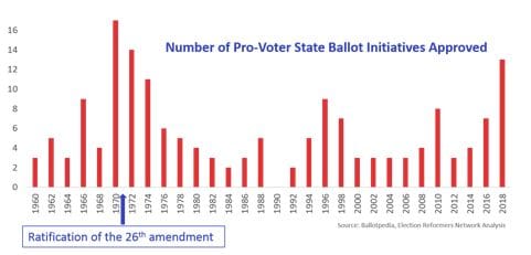 These days a lot of Whovilles are teaching Grinches the true meaning of Democracy. Voters approved thirteen state level pro-voter ballot initiatives this year, the most since the early 1970s, which interestingly was the last time Congress and the states changed the Constitution (passing the 18-year-old voting age amendment).