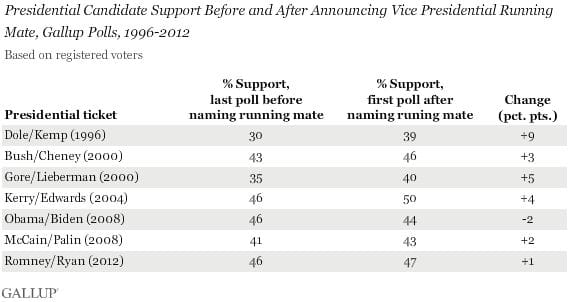 Blumenthal also uses this chart from Gallup to look at the past significance of the Vice Presidential announcement, Credit: Gallup
