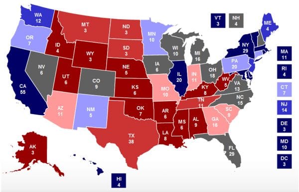The presidential race is won by obtaining 270 of the 538 votes in the Electoral College. President Barack Obama and Republican candidate Mitt Romney are campaigning relentlessly, but much of their focus is on battleground/swing states. Each party has states that they can rely on to vote in their favor, but achieving 270 electoral votes requires reaching out to those undecided states.