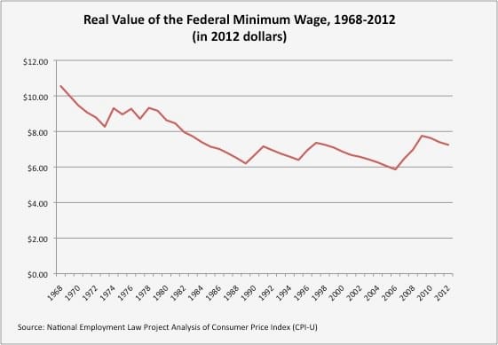 The Fair Minimum Wage Act of 2013 seeks to account for Congress' failure to raise the minimum wage in accordance with inflation and the heightened cost of living over the past decades.